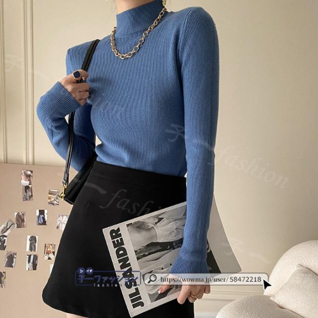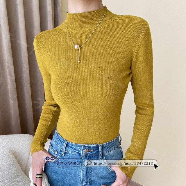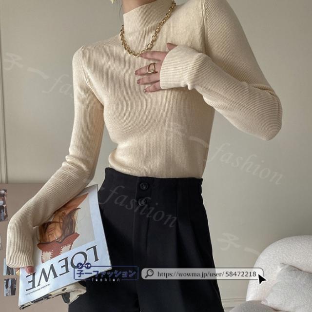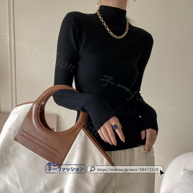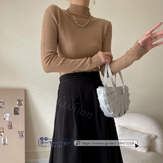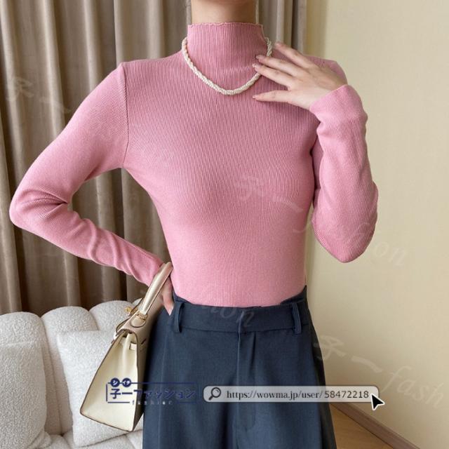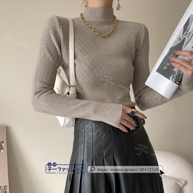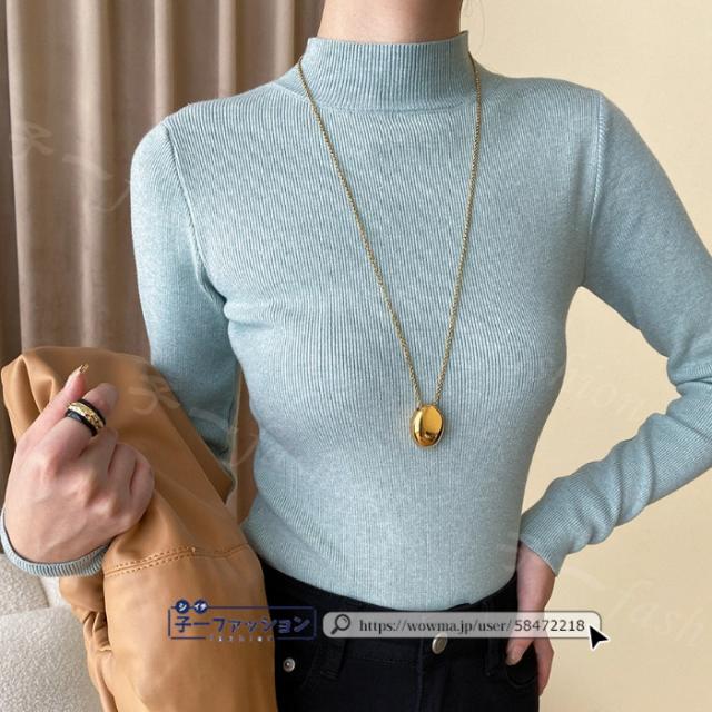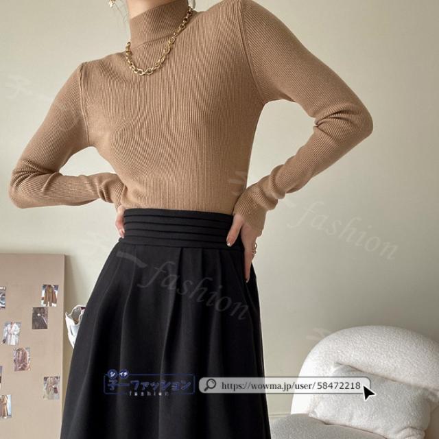 リブニット ニットトップス ニットセーター 長袖 冬新作 新作 レディース ハイネックニット 防寒 薄手 無地 重ね着 きれいめ オフィス カジュアル 無地 着回し 着痩せ プルオーバー インナー 秋冬