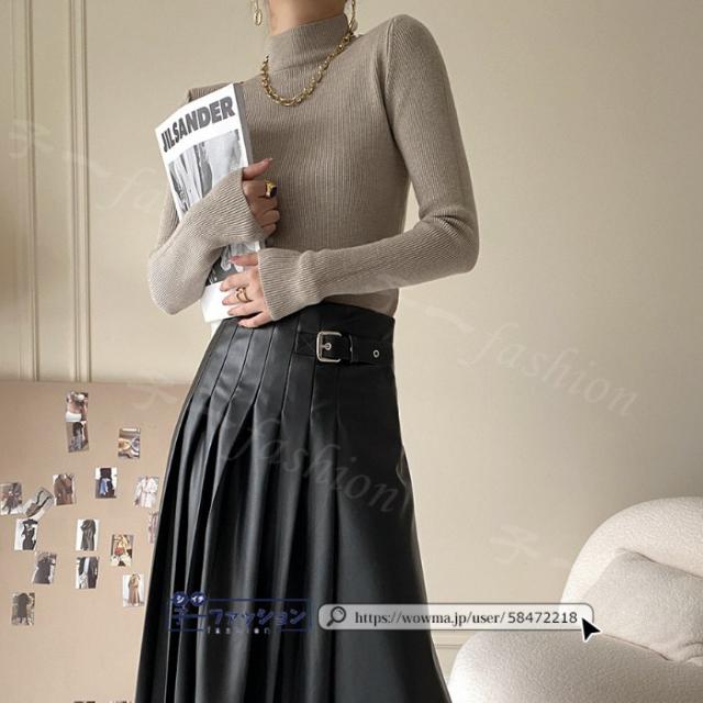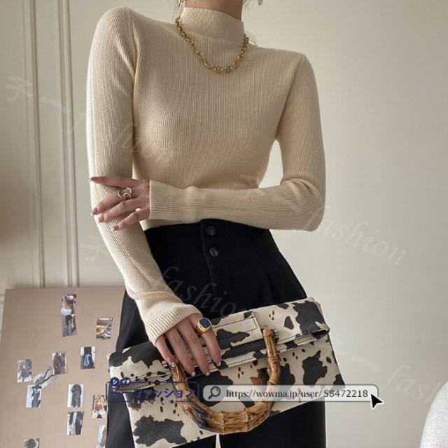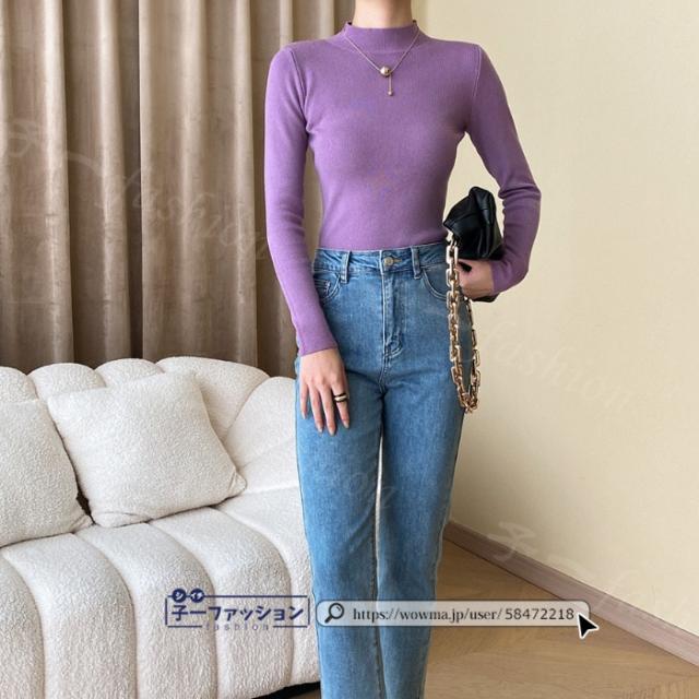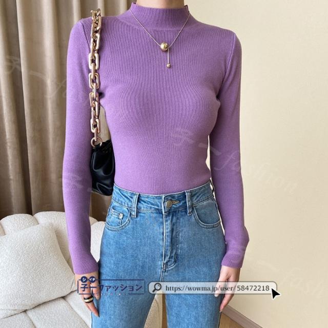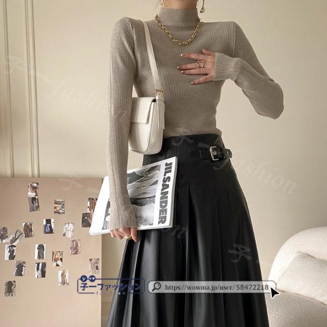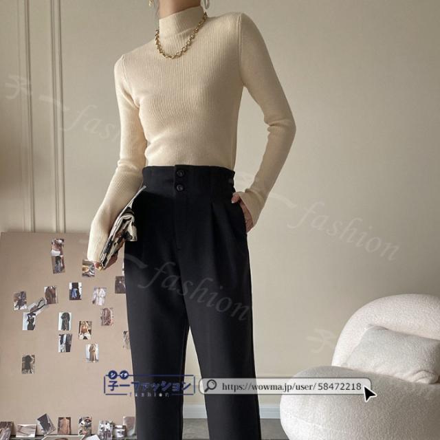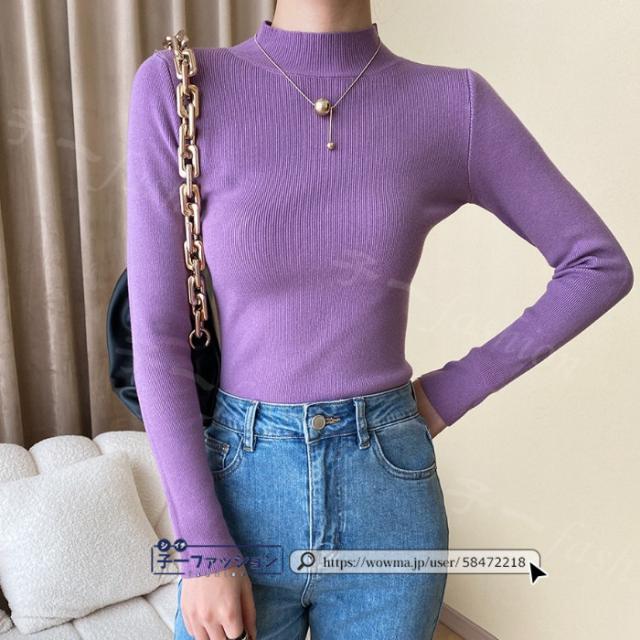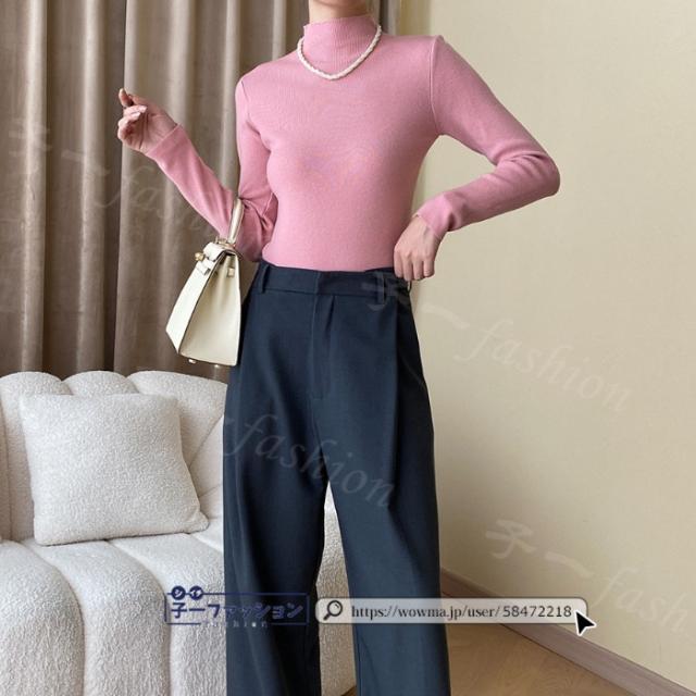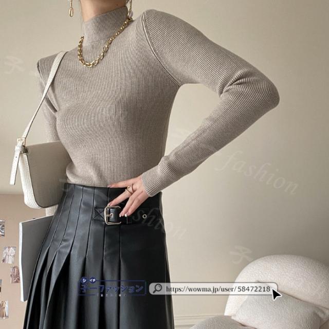 リブニット ニットトップス ニットセーター 長袖 冬新作 新作 レディース ハイネックニット 防寒 薄手 無地 重ね着 きれいめ オフィス カジュアル 無地 着回し 着痩せ プルオーバー インナー 秋冬