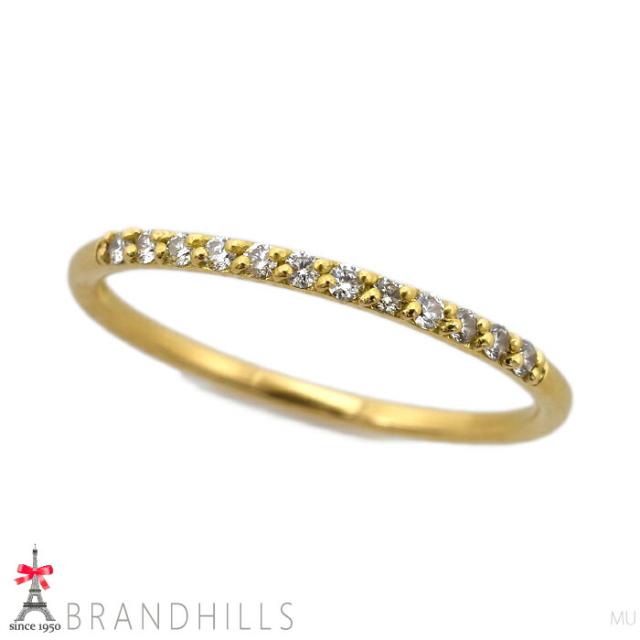 手元に繊細でエレガントな印象を与える細身のダイヤモンドリング。重ね着けをすることもできスタイリングの幅が広がります。