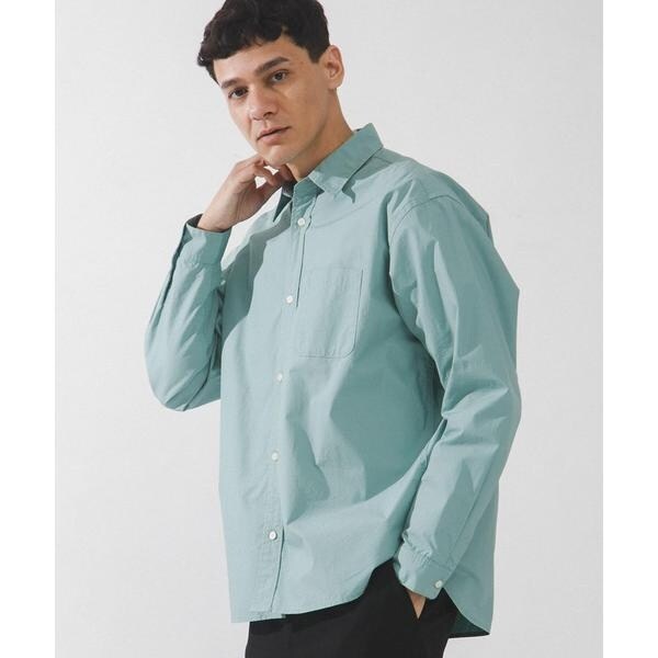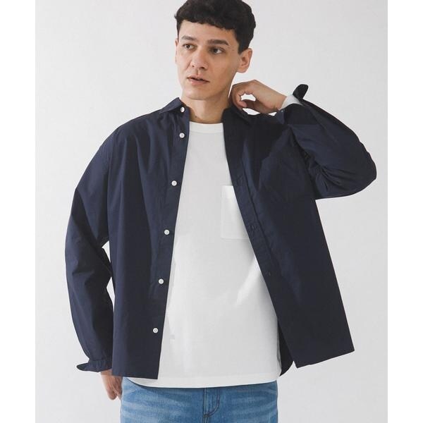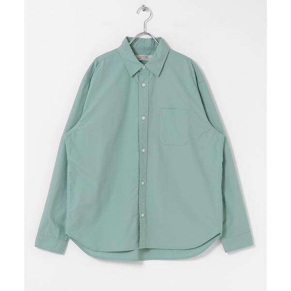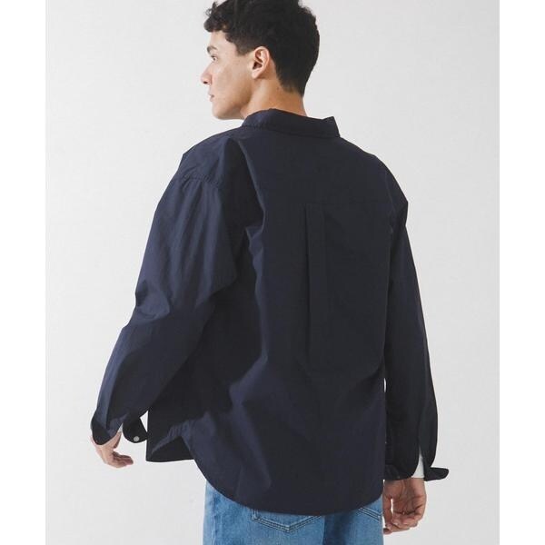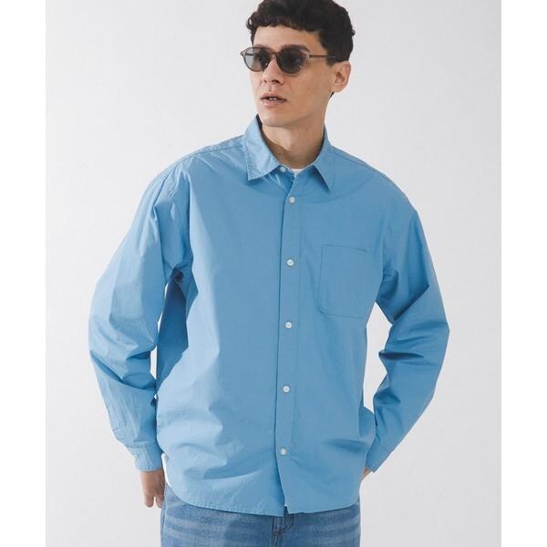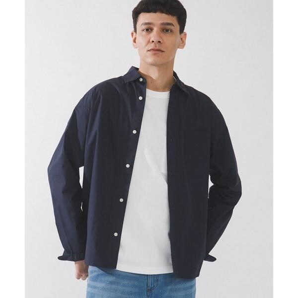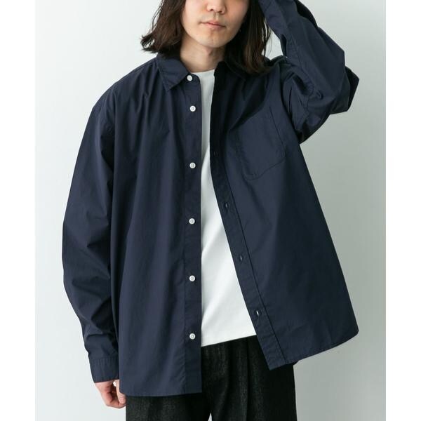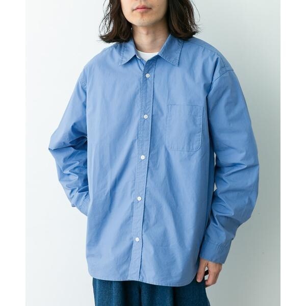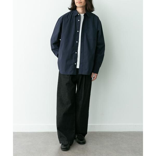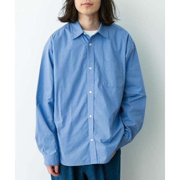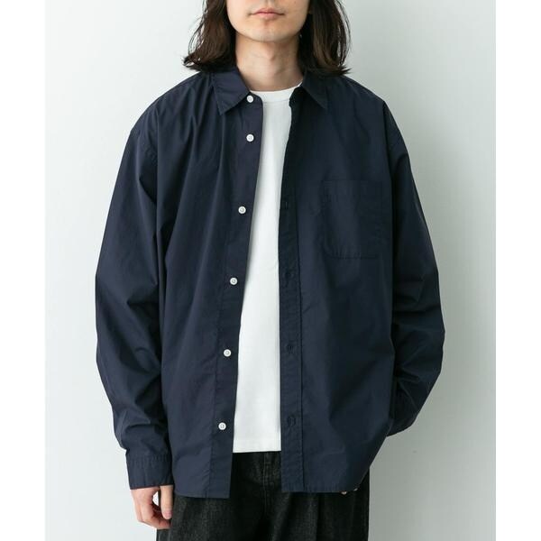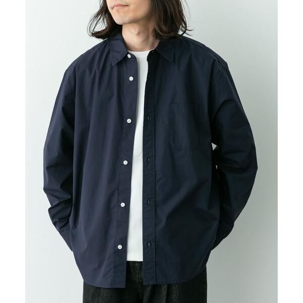 高密度タイプライター生地のしっかりした風合いが特徴の長袖シャツで、通勤から休日まで幅広く使える一枚です。程よいハリがあるためジャケットのインでもだらしなくならず、シャツ単体でもきれいなシルエットが保てます。