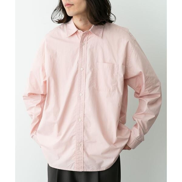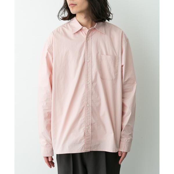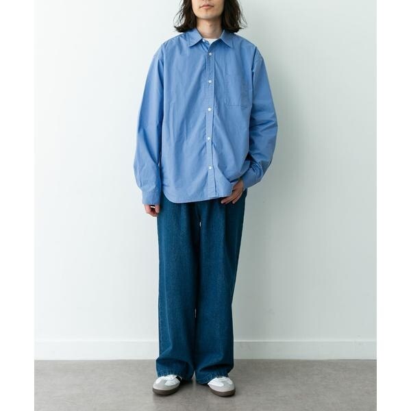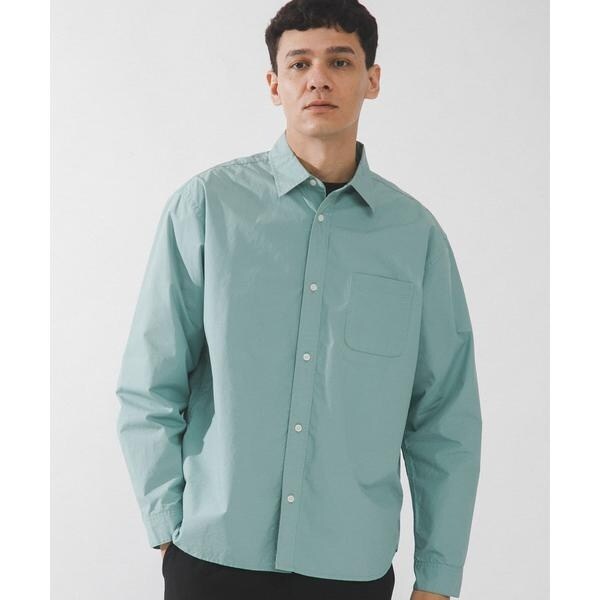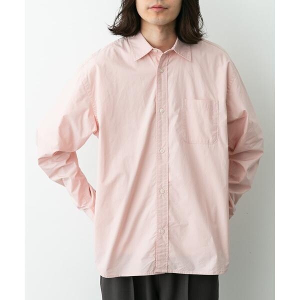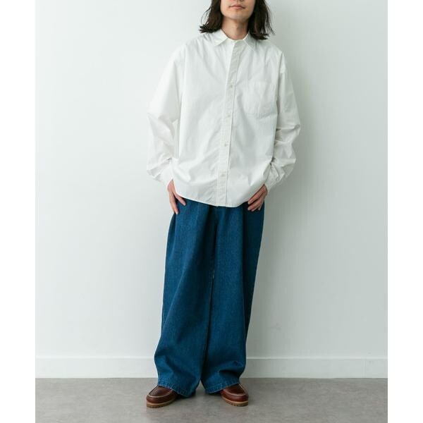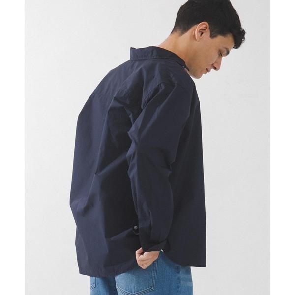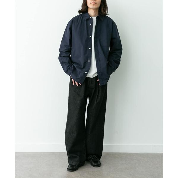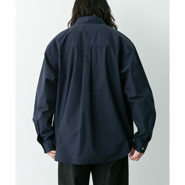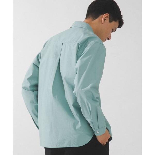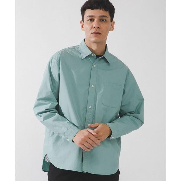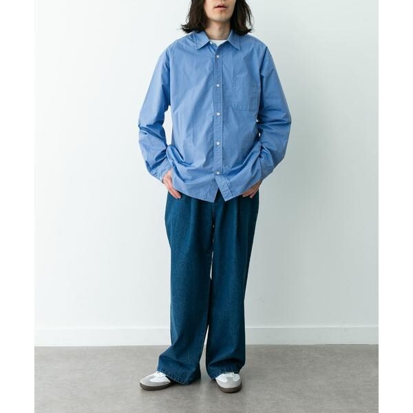 高密度タイプライター生地のしっかりした風合いが特徴の長袖シャツで、通勤から休日まで幅広く使える一枚です。程よいハリがあるためジャケットのインでもだらしなくならず、シャツ単体でもきれいなシルエットが保てます。