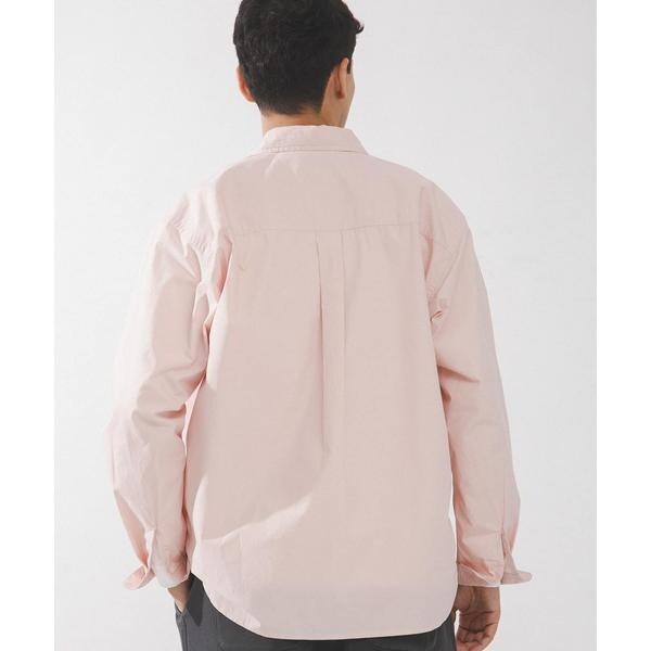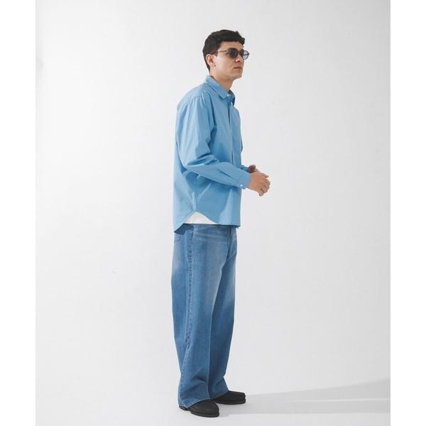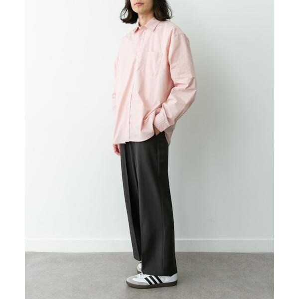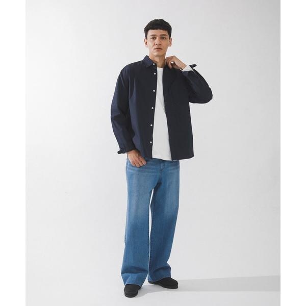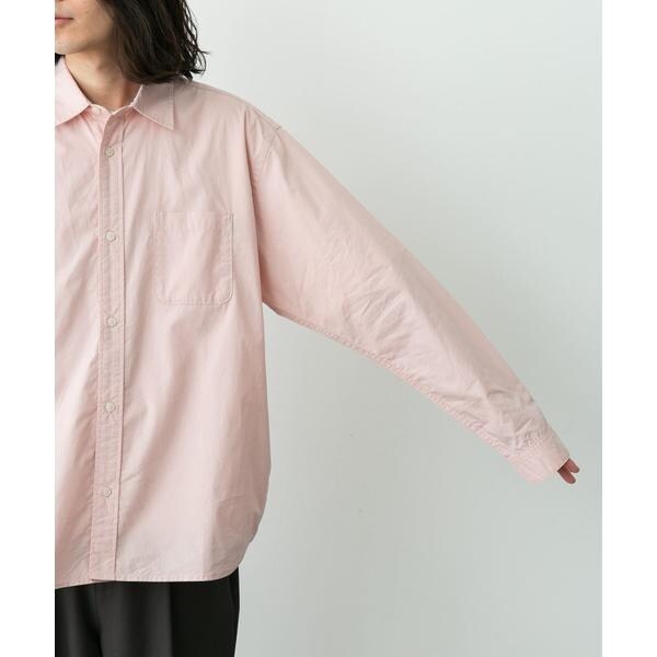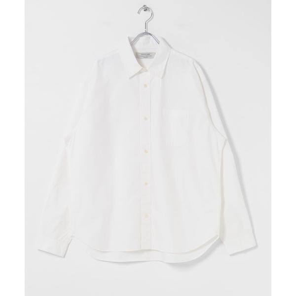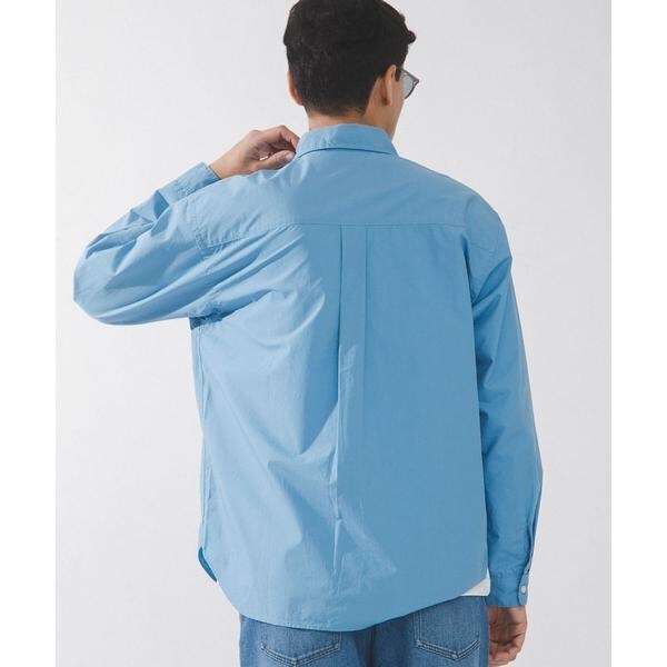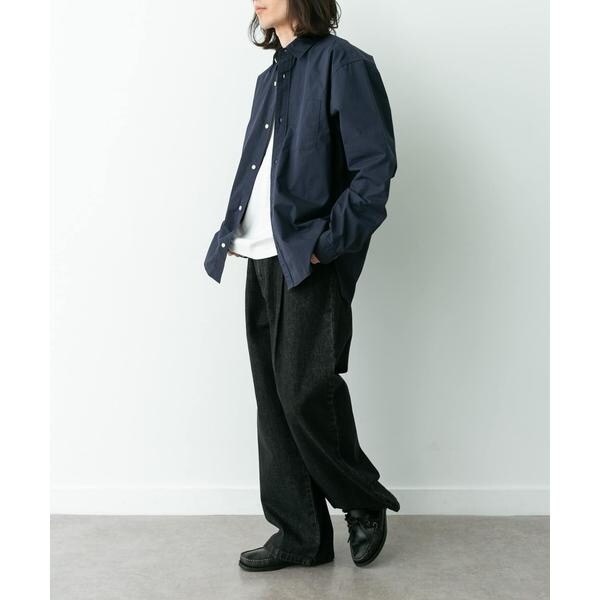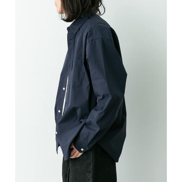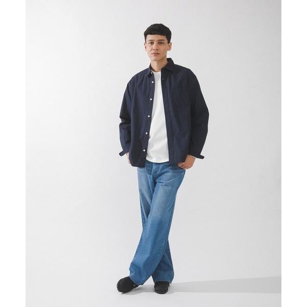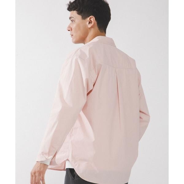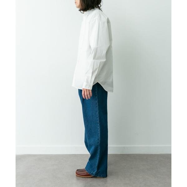 高密度タイプライター生地のしっかりした風合いが特徴の長袖シャツで、通勤から休日まで幅広く使える一枚です。程よいハリがあるためジャケットのインでもだらしなくならず、シャツ単体でもきれいなシルエットが保てます。