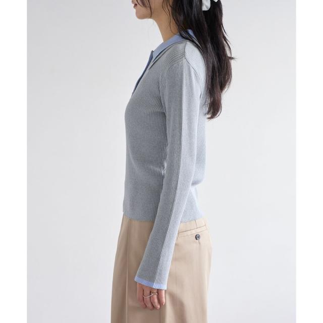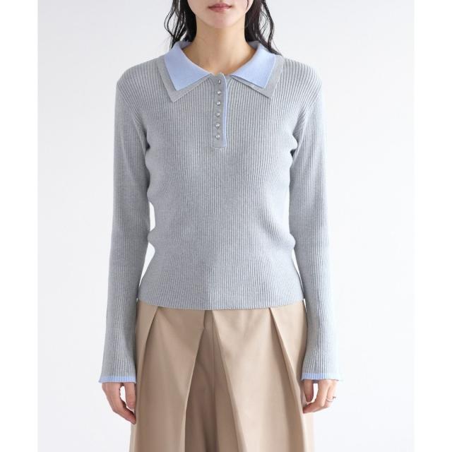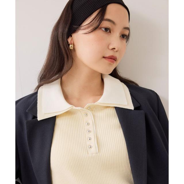ダブルカラーポロニットトップス