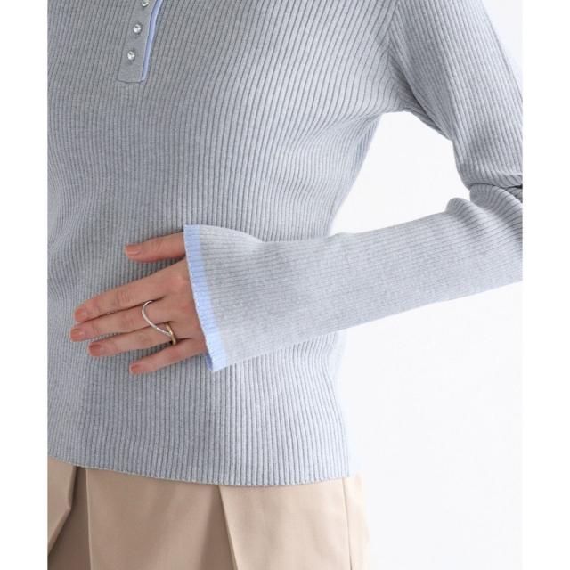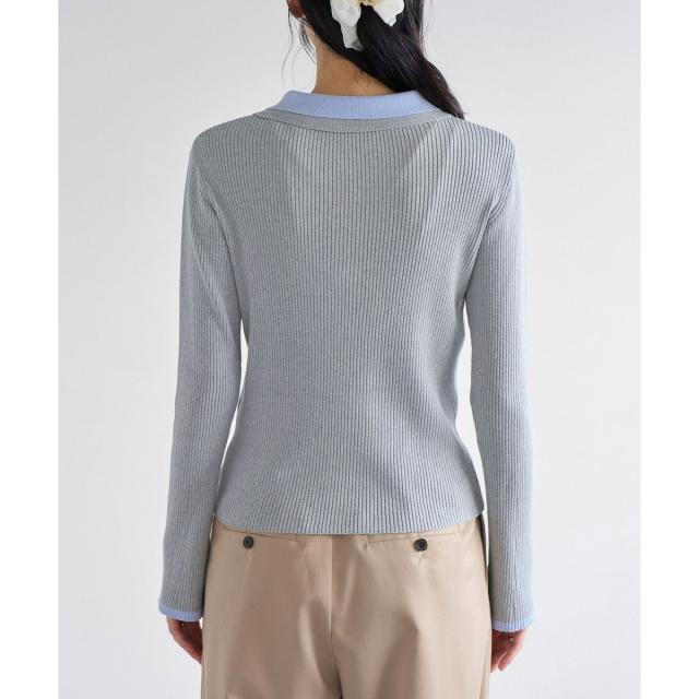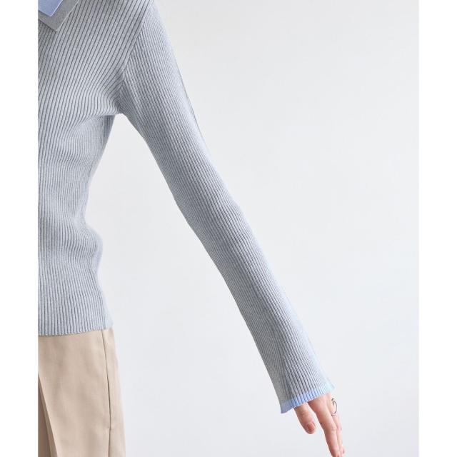 リブ編みで女性らしく仕上げた今年らしいダブルカラーポロニットトップス。春素材になりNEWカラー登場!