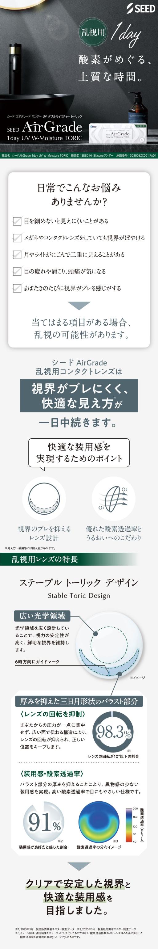 (処方箋必要)エアグレード ワンデー UV ダブルモイスチャー トーリック 6箱(1箱30枚入)1日使い捨て 乱視用 送料無料 ポスト便 コンタクトレンズ シード