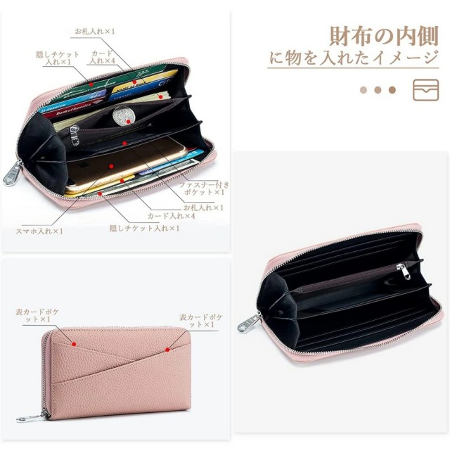、お札入れ×2、チケット入れ×2、写真入れ×1、ファスナー付きポケット×1、スマホ入れ×1
