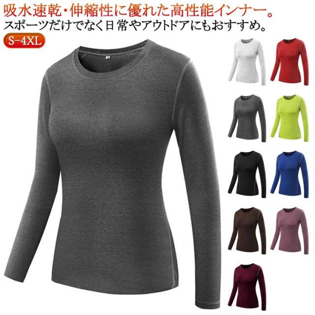 スポーツインナー 長袖 コンプレッション レディース アンダーウェア ヨガウェア ストレッチ 吸汗速乾 フィットネスウェア ランニング 重ね着 ジム ウェア スポーツウェア ウォーキングウェア 丸首 ゴルフインナー トレーニングウェア アンダーシャツ