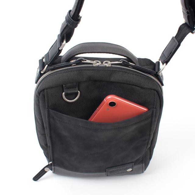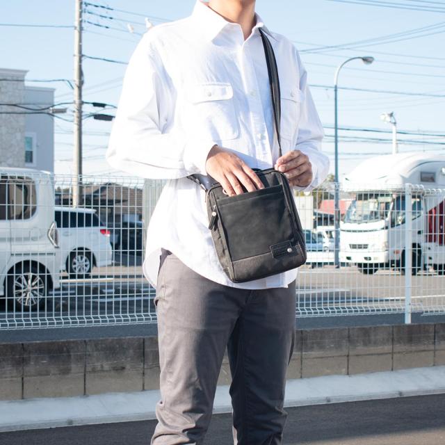 ◆ヌバック調合皮を使った落ち着いた質感のショルダーバッグ。