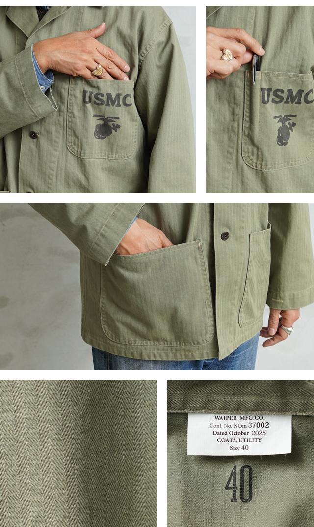 WAIPER.inc 米軍 1940’s U.S.M.C. P-41 HBT ユーティリティジャケット【WP1048】【Cx】【T】