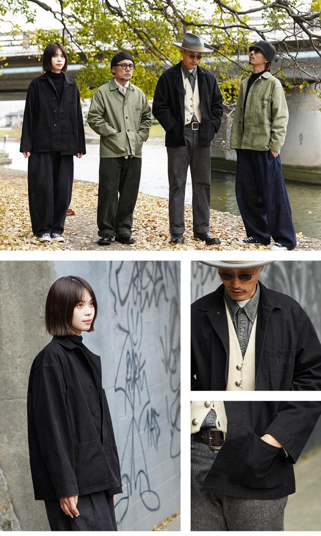 小ぶりな襟にフロントにはネオバボタンを採用し、カバーオールのように軽く羽織れるジャケットとして、非常に使い勝手の良い一着です。