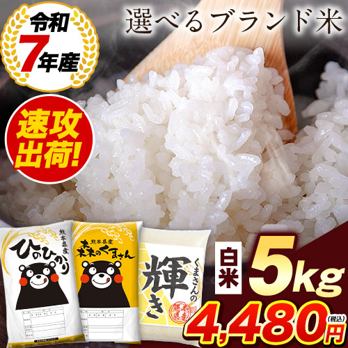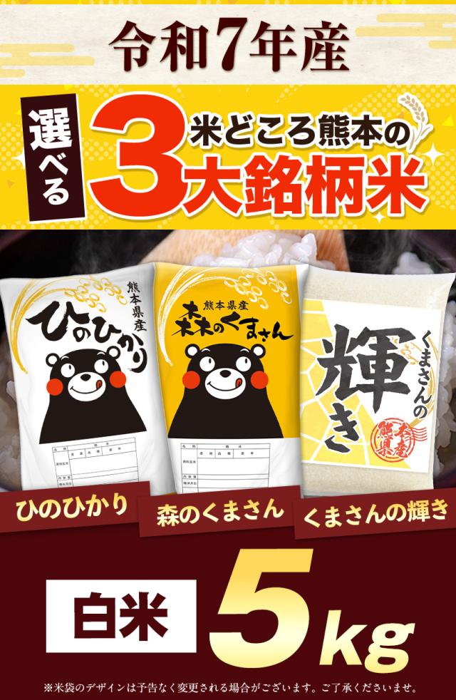 米 5kg お米 令和7年 産 熊本県産 三大ブランド米 選べる 白米 ひのひかり 森のくまさん くまさんの輝き 送料無料 単一原料米 ひのひかり コメ 精米 2025年 備蓄米 ではありません《1-3営業日以内に発送予定(土日祝日除く)》
