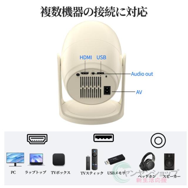この家庭用プロジェクターはWi-Fi、Bluetooth接続以外に、HDMI、USB端子が搭載しており、ノートパソコン/スマホ/TVボックス/DVDプレーヤー/USBメモリー/Google Chrome cast/X-Box/PS3/PS4など様々な周辺機器に接続できます