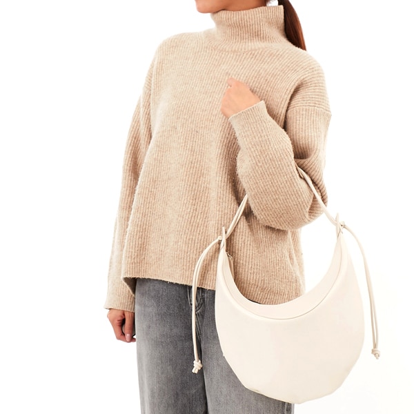 ハーフムーン型のワンショルダーバッグはしっかり形が出るフォルムで大人っぽく上品な印象。