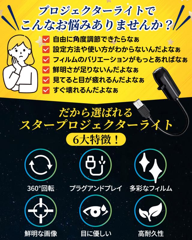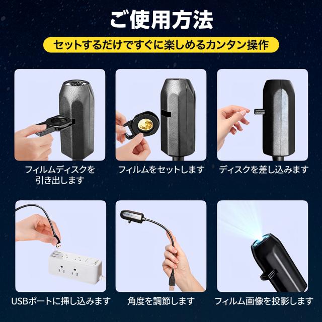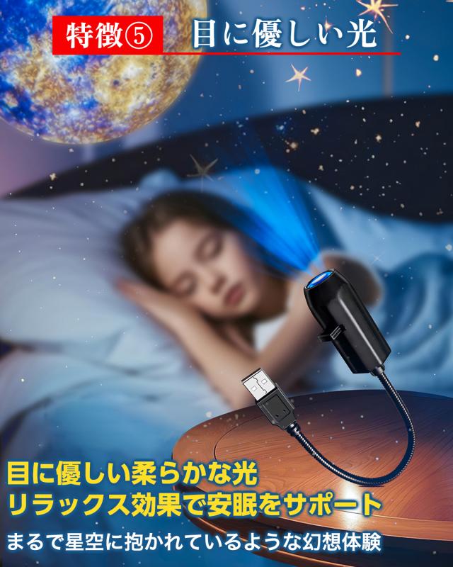 簡単USB接続&即投影:面倒な設定は不要。USBポートに差し込むだけのプラグアンドプレイで、瞬時に幻想的な空間が広がります。