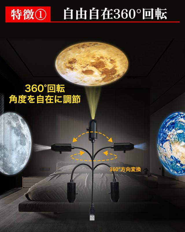 360度自由自在な投影角度:フレキシブルアームにより、天井や壁など場所を選ばず最適な角度で星空を楽しめます。