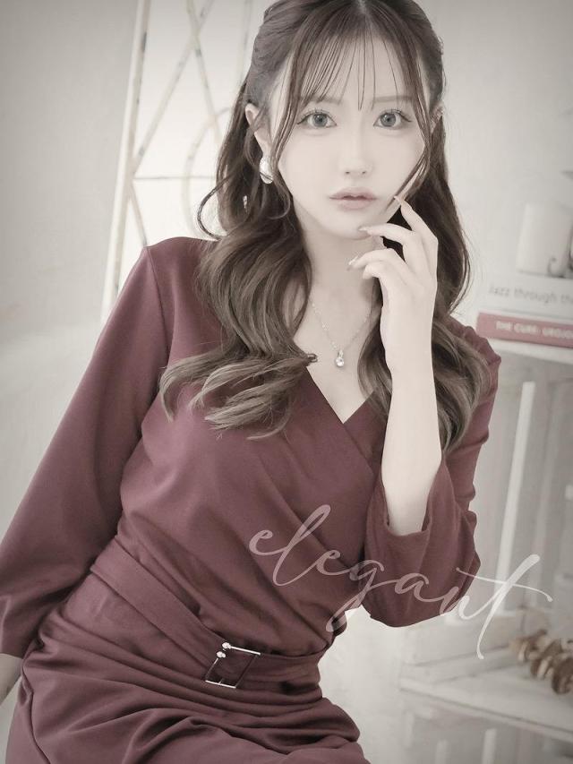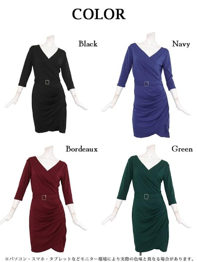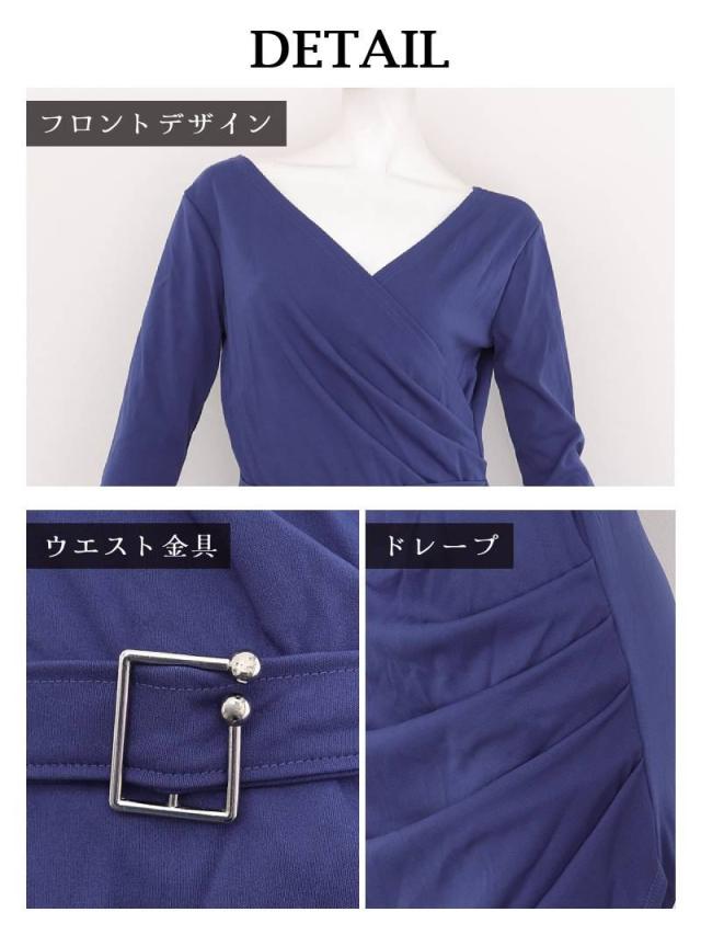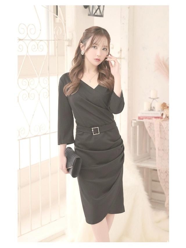 一部予約販売 キャバワンピース RyuyuChick カシュクール 七分袖 袖付きワンピース ベルト付き ギャザー付け キャバ