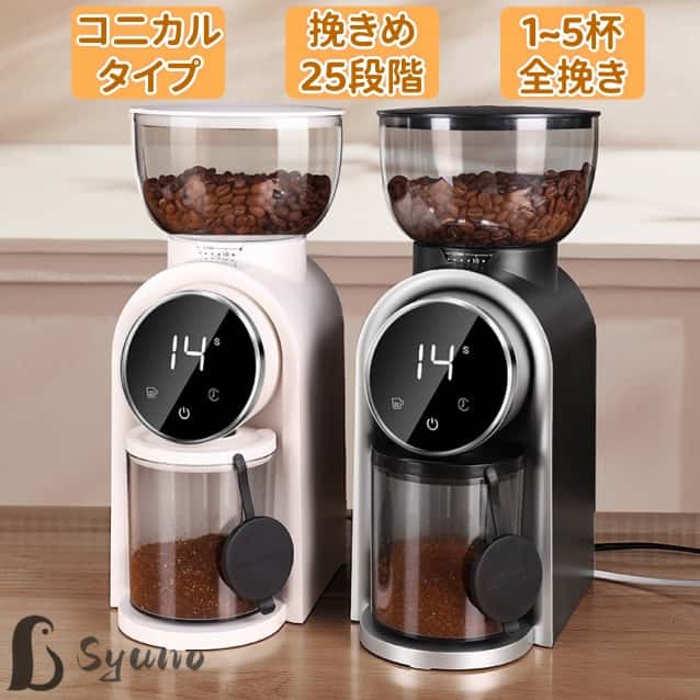 コーヒーミル 電動 電動コーヒーミル コニカル式 コニカル おしゃれ コンパクト 手入れ 簡単 ステンレス 電動ミル コーヒー 珈琲 簡単操作 オシャレ 自家挽きコーヒー 直前挽き 25段階挽き目 フレンチプレス コーヒー豆