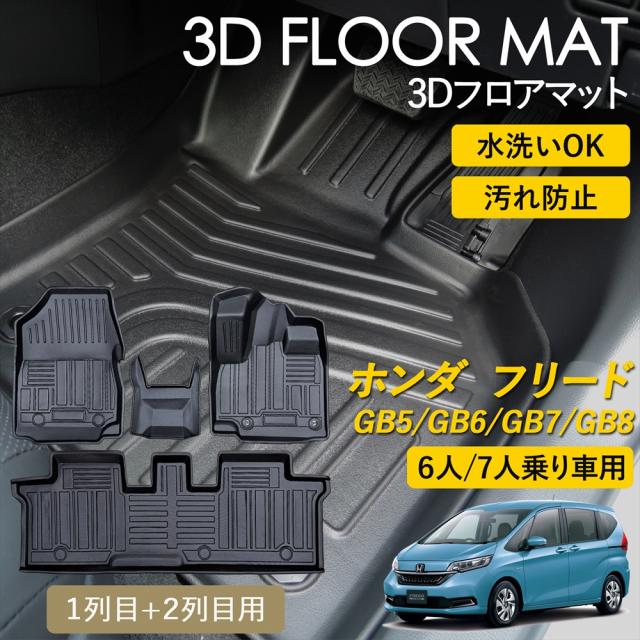 ホンダ フリード 6人乗り 7人乗り 3Dフロアマット フロアマット カーマット 運転席 助手席 1列目 2列目 セット 前後席 マット 立体マット 車 汚れ防止 水洗いOK 洗える 泥 耐久性 滑り止め付き 内装パーツ ブラック 専用設計 GB5 GB6 GB7 GB8 HONDA FREED