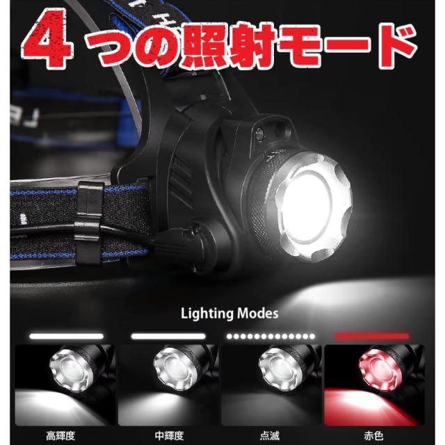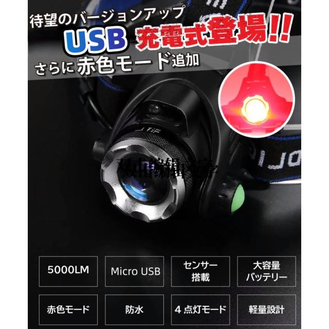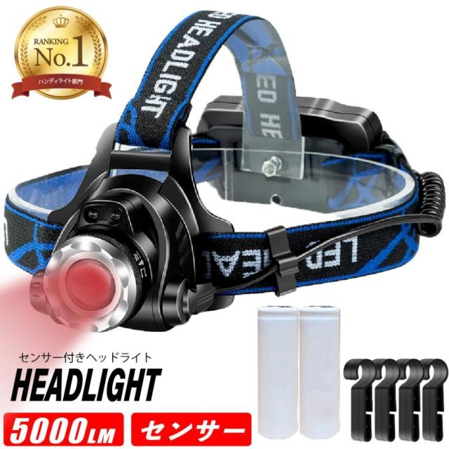 ヘッドライト 充電式 センサー機能 最強ルーメン ledヘッドライト ヘットライト ヘッドランプ 釣り 登山 ヘルメット 18650 角度調整機能 赤色 赤