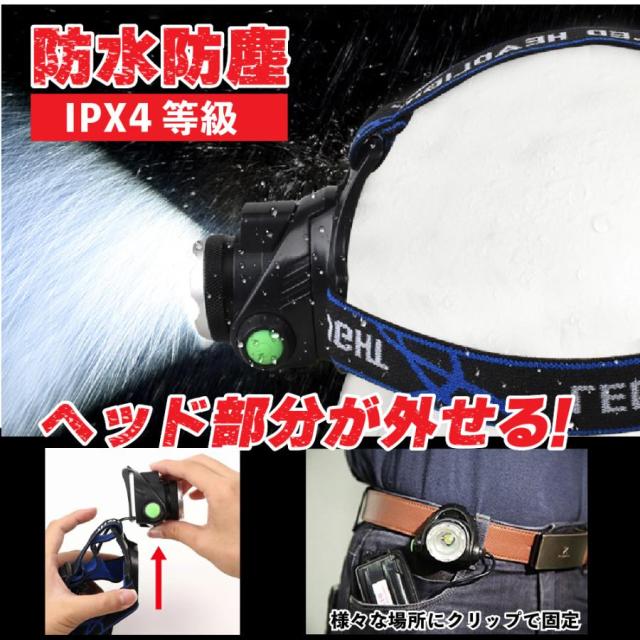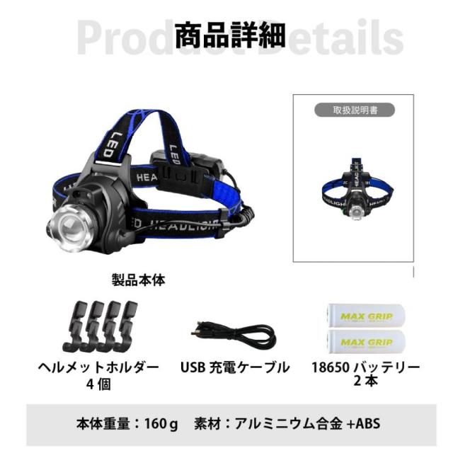 ヘルメットホルダー 登山用ヘッドライト 18650リチウムイオン電池 最強ヘッドライト 釣りライト 作業ヘッドライト 登山 ライト led頭につけるライト