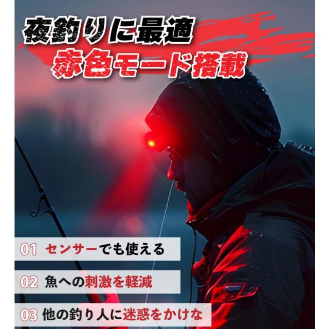 ヘルメットライト 釣り ライト ヘッドライト センサー機能 角度調整機能 usb充電 防水機能 釣りヘッドライト 釣り用ヘッドライト ヘッドライト 赤色 赤