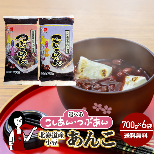 北海道産小豆100%使用<選べる6袋>つぶあん・こしあん各700g/ おはぎ ぜんざい おしるこ あんこ 送料無料 小豆 あずき こわけや