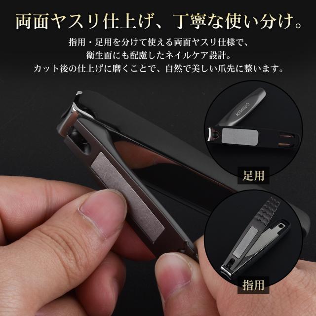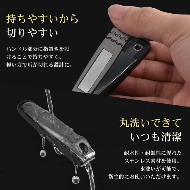 【送料無料】KIMINO 爪切り 高級 切れ味 つめきり 高硬度ステンレス鋼刃 鏡面研磨 足 飛び散らない 巻き爪 よく切れる 厚い爪 硬い爪 爪 飛び散り防止 切れ味 洗える 水洗い 爪やすり ツメキリ 人気 大人 子供 男 女 プレゼント ギフト 贈り物