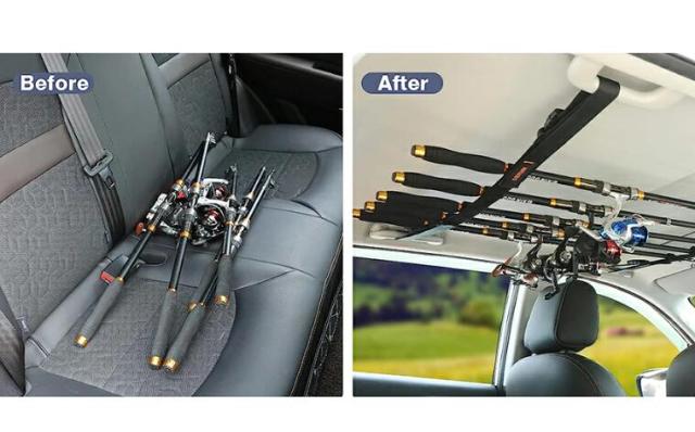 【 スペースの節約】ルーフ近に取り付け、車内を広々と使えます。ロッドラックがあれば、車の後ろが混乱することはありません。スペースを管理する優れた方法。フィッシングロッドラックは、背中の多くのスペースを節約しました。