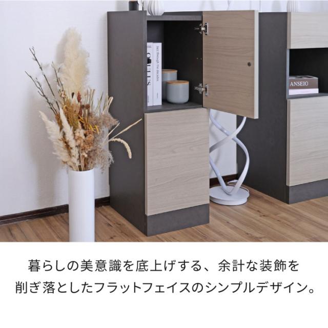 組み合わせ次第で、リビングボード・キャビネット・飾り棚など多用途に展開可能です。生活スタイルの変化や家族の成長に合わせてレイアウト変更ができ、長く使える設計です。