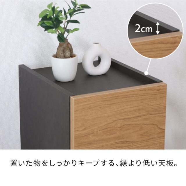 木目×ダークカラーのツートンデザインは、ナチュラルにもモダンにも合わせやすく、幅広いインテリアに対応します。