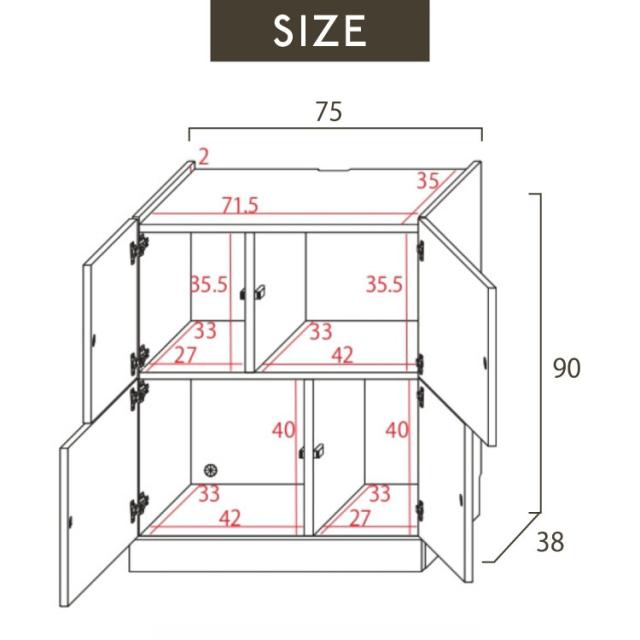 キャビネット 幅75cm/引き出しタイプ | キャビネット 幅75cm /扉タイプ | デスク 幅75cm |