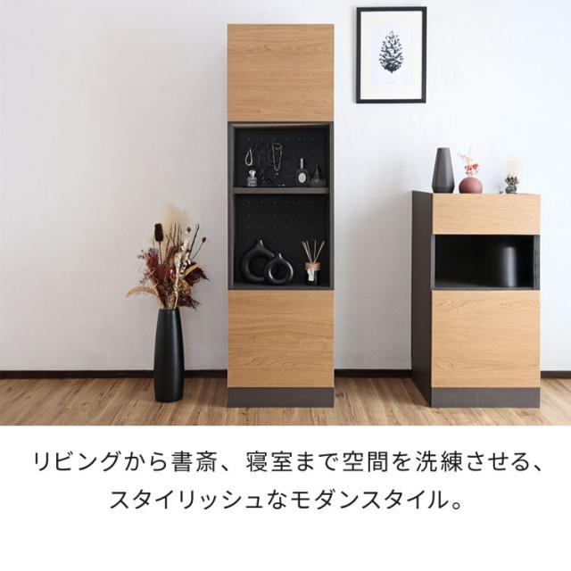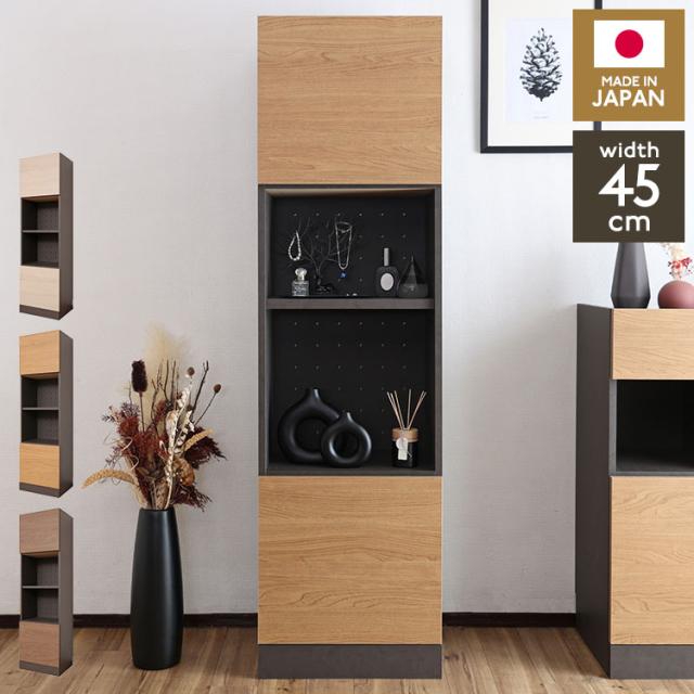 日本製 選べる壁面収納 幅30cm~75cm キャビネット 幅45cm 高さ160cm オープンタイプ 隙間収納 モダン リビング収納 扉収納 プッシュ扉 おしゃれ 木目 収納家具 9075t【送料無料】