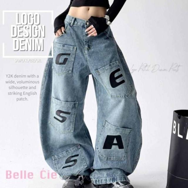 -ボリューム抜群のワイドシルエットに英字パッチが映えるY2Kデニム。