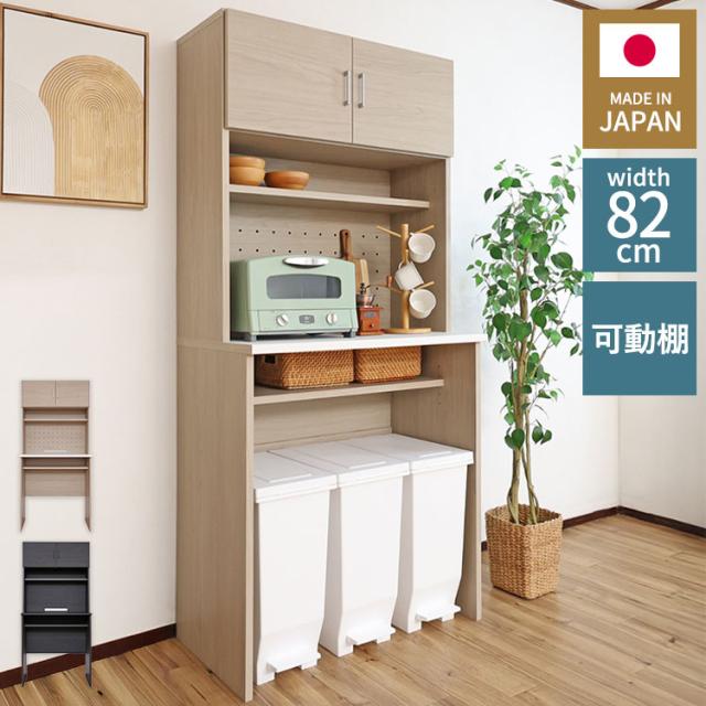 日本製 キッチンラック ゴミ箱収納 レンジ台 机 作業台 国産家具 カウンター キッチン 台 食器棚 キッチンキャビネット キッチンカウンター ペール 幅82cm スツール DIY 木製 組立 新生活 CU-1885T【送料無料】