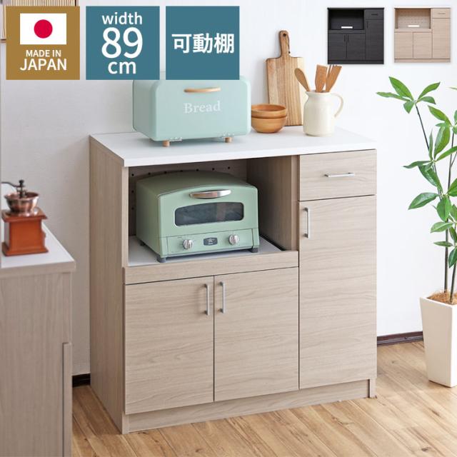 扉収納+オープン棚で、見た目も使い勝手も◎扉内には3cm間隔で4段階調整できる可動棚1枚付き。