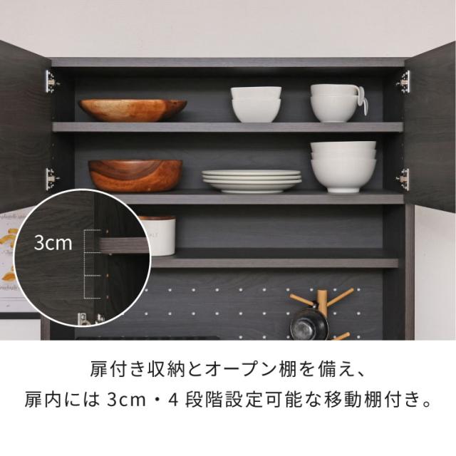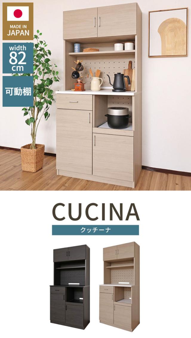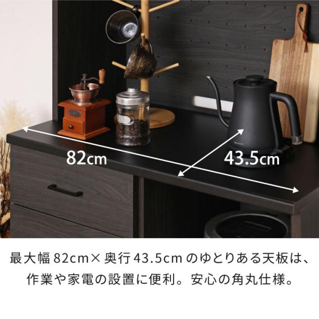 キッチンボード 食器棚 スリム 幅82cm グレージュ ホワイト レンジ台 スライド棚 コンセント穴 扉付き収納 引き出し付き 可動棚付き おしゃれ カップボード 北欧風 モダン シンプル 台所収納【送料無料】