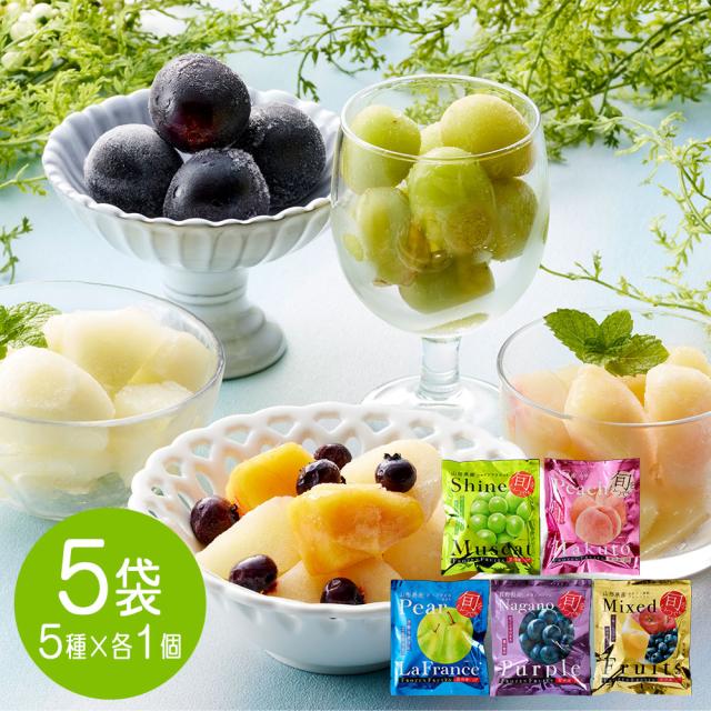 冷凍フルーツ 凍眠 山形 長野 5種食べ比べ 5袋セット 冷凍 ギフト シャインマスカット ラフランス 白桃 ナガノパープル ミックス 国産 果物