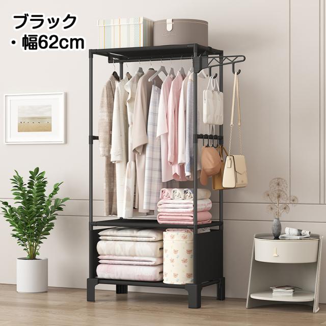 「クーポン配布中」「即納」幅62/05cm ハンガーラック 多機能 衣類収納ラック 衣類収納ハンガー ハンガーラック 棚付き スリム ハンガーラック収納 省スペースクローゼット収納 シンプル 組立簡単 洋服掛け 布団収納 棚付き 防湿 シンプル