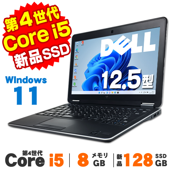 ノートパソコン 中古 Windows11 Webカメラ DELL Latitude E7240 12.5インチ 第4世代 Core i5 4310U メモリ8GB 新品SSD128GB 無線LAN Bluetooth Windows11 Pro Office付き