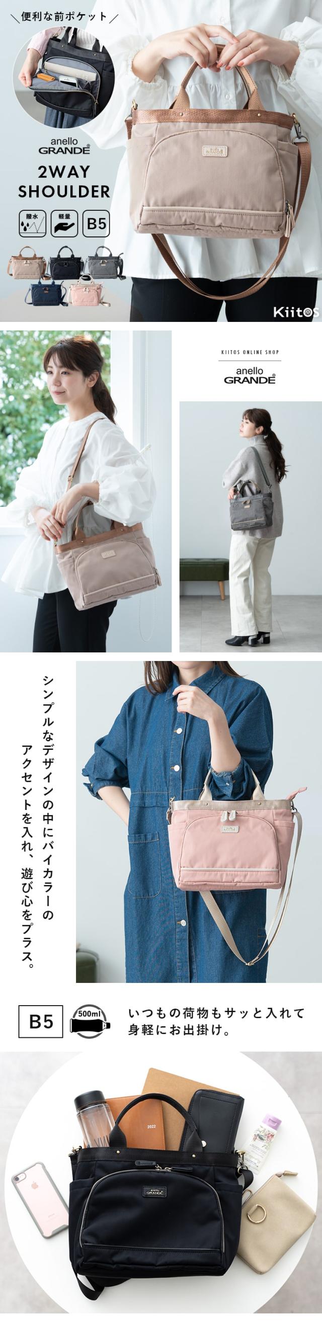 ショルダーバッグ レディース アネロ anello GRANDE ブランド 2way トートバッグ 撥水 軽量 8ポケット 多機能 b5 ペットボトル お財布バッグ かわいい おしゃれ 大人 きれいめ 自立 通勤 通学 ビジネス 旅行 ファスナー付き プレゼント ギフト