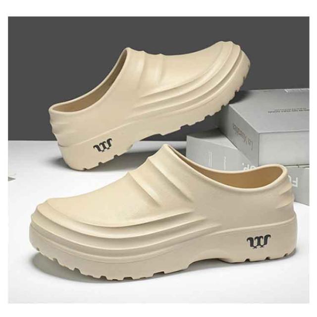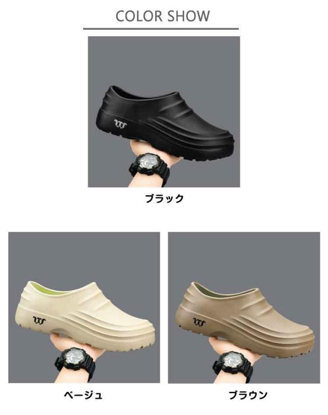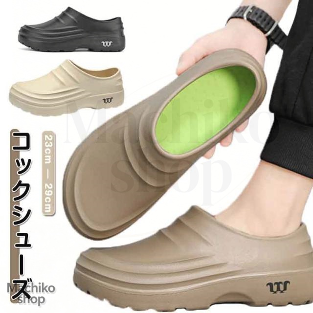 | コックシューズ 23?29cm 【滑りにくい厚底設計】 凹凸のあるソールで、濡れた床でも安心のグリップ力。 【お手入れ簡単】 撥水アッパーで汚れに強く、水洗いもできていつでも清潔。 【快適インソール】 柔らかく弾力のあるクッションで、長時間履いても疲れにくい。 【便利なサボタイプ】 脱ぎ履きがスムーズで、普段使いにぴったり。 【スタイルアップ】 厚底デザインで、さりげなく脚長効果をプラス。 【一体成型・防水仕様】 つなぎ目のない一体成型でしっかり防水。丸洗いできてお手入れラクラク。 | |