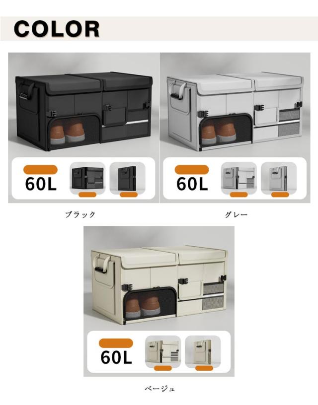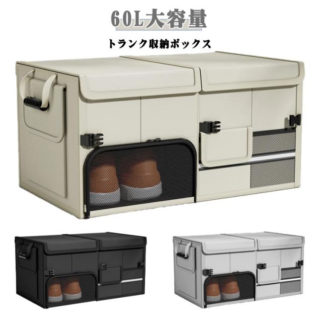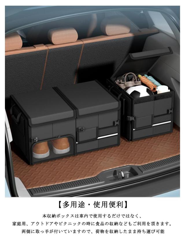 トランク収納ボックス 大容量 60L 収納 蓋付き 収納ケース 靴収納 収納 防水 取っ手付き 反射テープ付き トランク 車用収納ボックス 車トランクボックス ラゲッジボックス 車用 トランク収納ボックス 小物整理 折り畳み式 車用収納ボックス