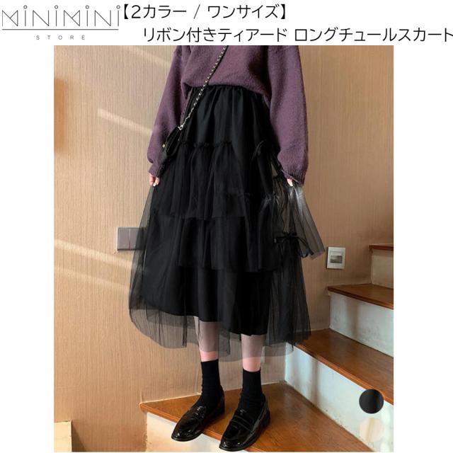 MINIMINISTORE ティアードスカート ロングチュールスカート レディース リボン付きスカート ランダムティアードスカート ふんわりフレアスカート春夏 6HMEIX-002