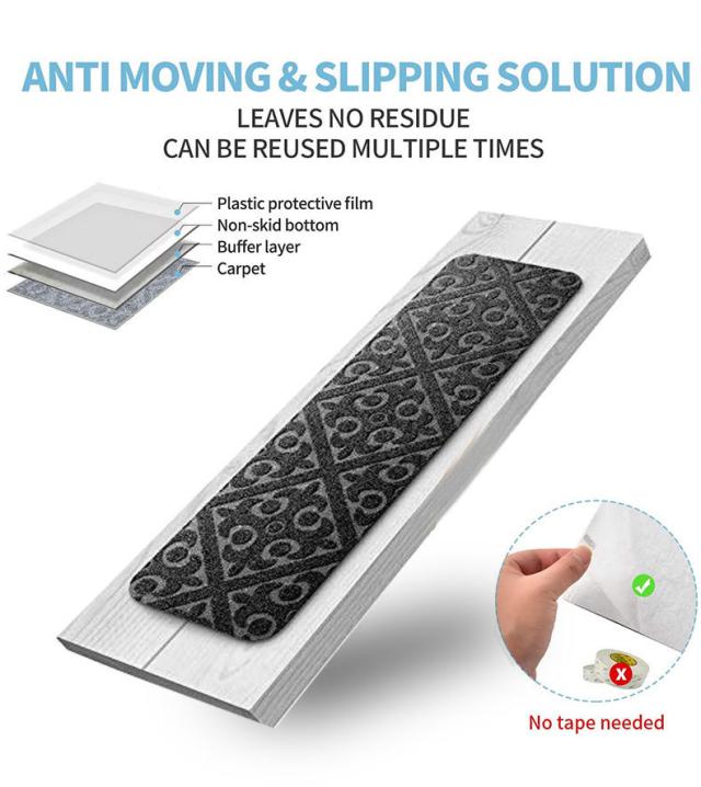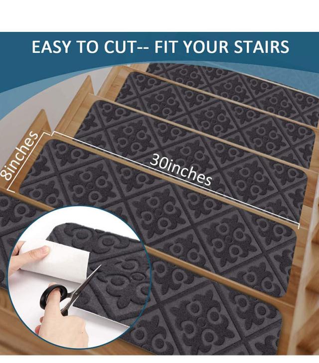 階段マット 吸着 滑り止めマット 防音 おしゃれ ペット 犬 足冷え 介護 高齢者 転倒防止 洗える 汚れに強い キズ防止 15枚組 20*76cm おくだけ吸着 ずれない 17色-12