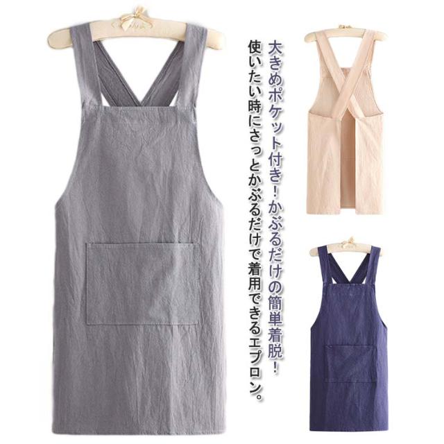 エプロン かぶるだけの簡単着脱 リネン風 北欧 大きめポケット付き エプロン バッククロス スタッフエプロン クロスバックエプロン かぶるだけの簡単着脱 カフェ 保育士 メンズ 美容院 レディース エプロン ガーデニング 居酒屋 美容院 花屋