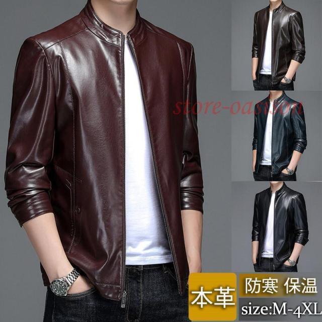 レザージャケット 革ジャン メンズ 本革 レザー バイクジャケット ライダース ブルゾン トップス カジュアル スリム 父の日 プレゼント トレンド