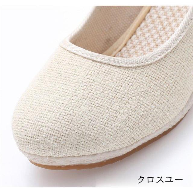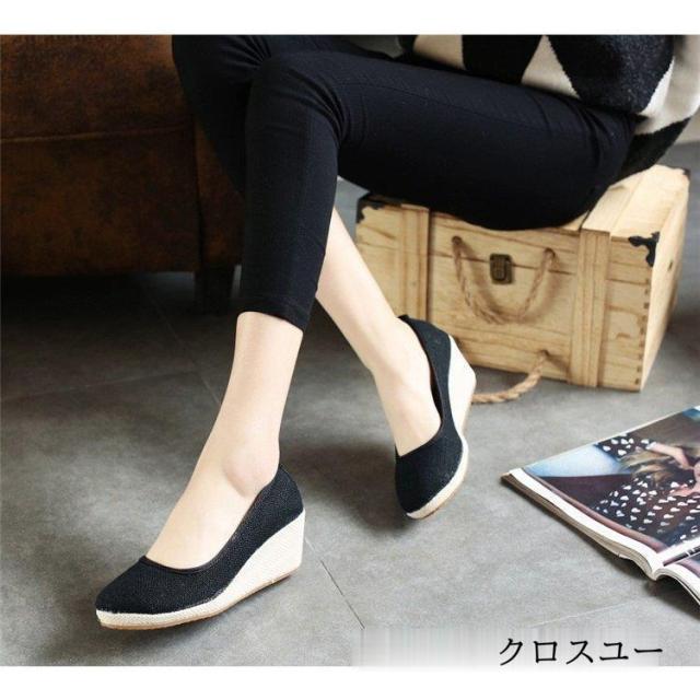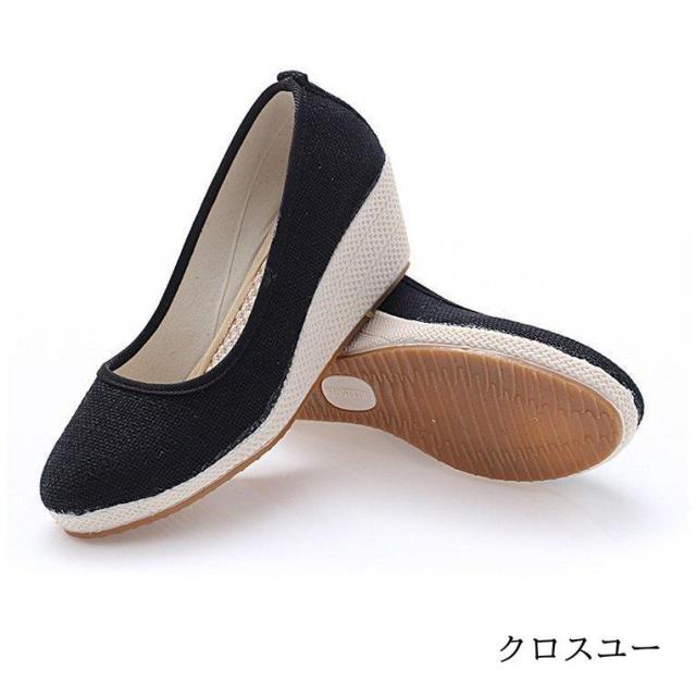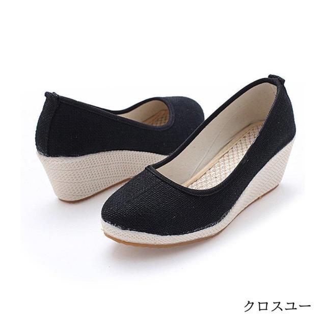 パンプス 痛くない 歩きやすい レディース スリッポン リネン ウエッジ ウエッジソール ウエッジソールパンプス シューズ 靴 黒 美脚 高見え ヒール約6cm