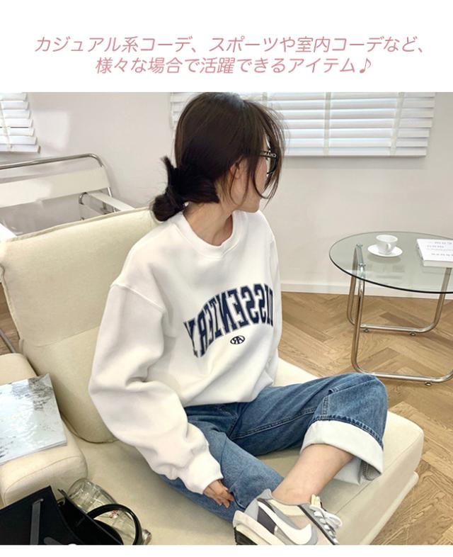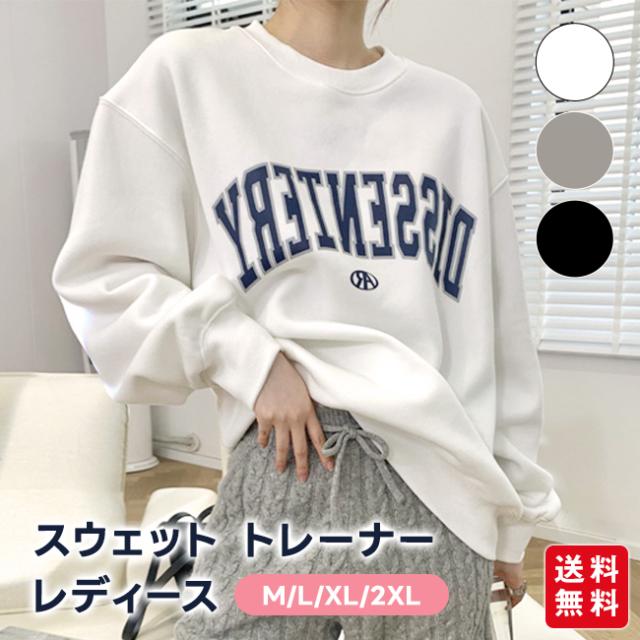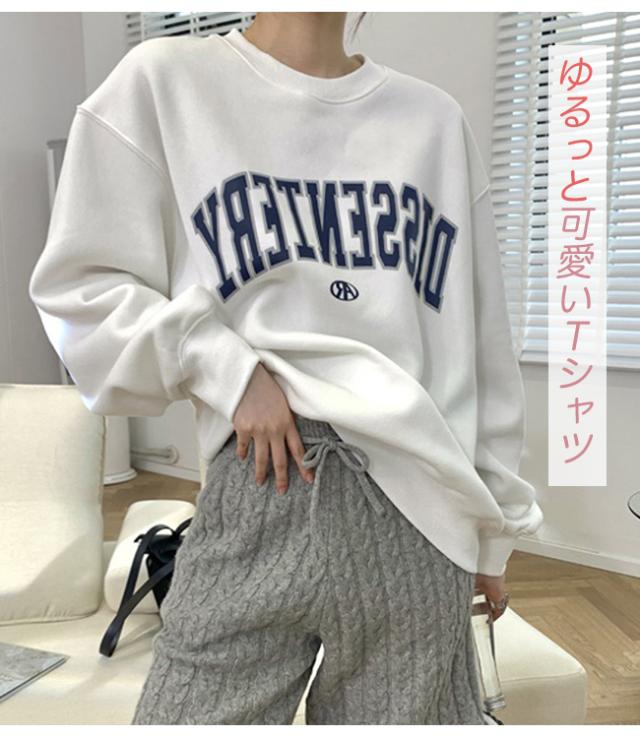 【クーポン配布中!】スウェット トレーナー レディース Tシャツ プルオーバー トップス 薄手 体型カバー 長袖 クルーネック 春 秋 冬 カジュアル ゆったり