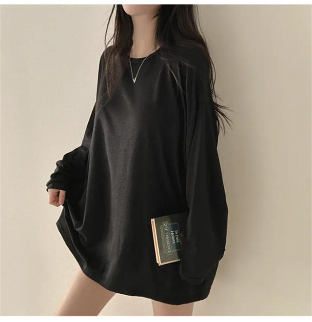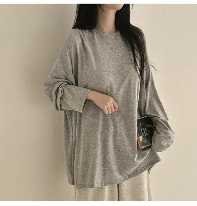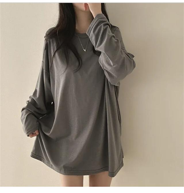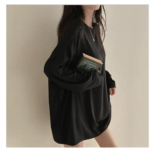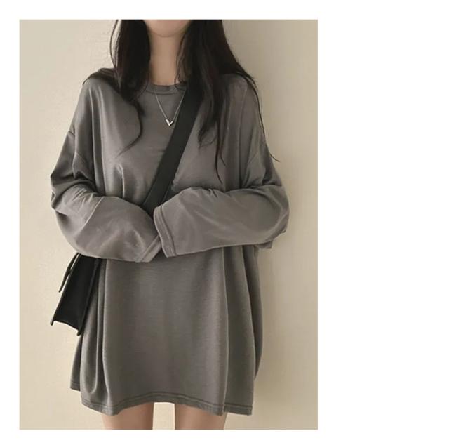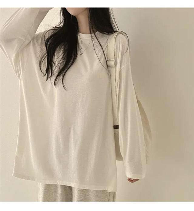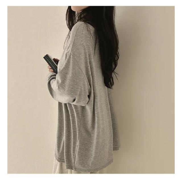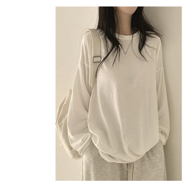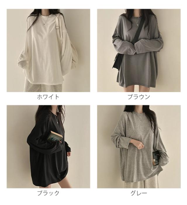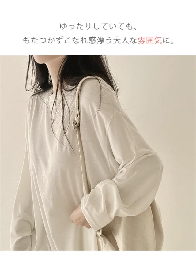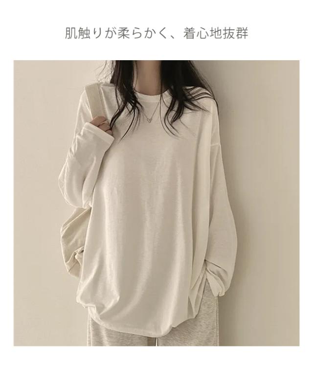 【クーポン配布中!】Tシャツ レディース プルオーバー トップス 薄手 体型カバー 長袖 無地 クルーネック 春 秋 カジュアル ゆったり