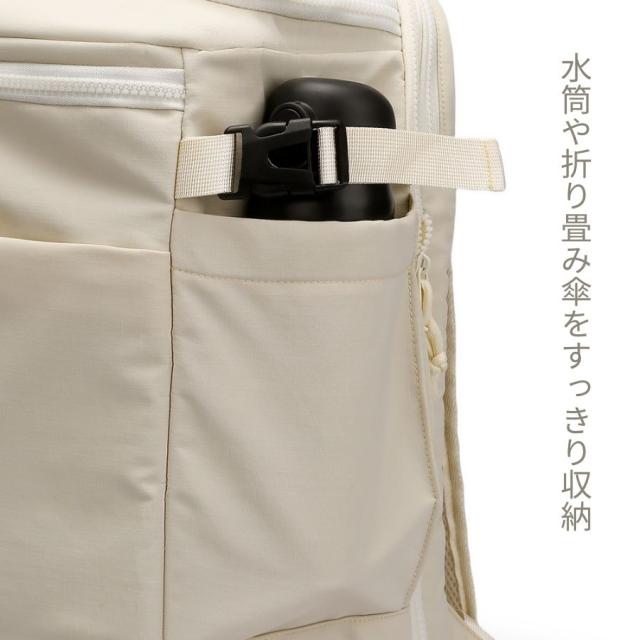 【側面ボトル収納】 水筒や折り畳み傘をバッグの外側にすっきり収納でき、取り出しも楽ちんです。